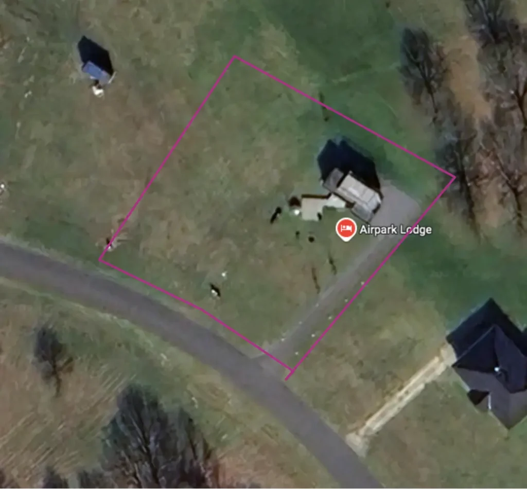 Die Flugzeuge können auf dem nordwestlichen Grundstück 71A (zwischen den Stromkästen) geparkt werden. Praktisch gestapelt passen hier locker bis zu 5 Flugzeuge neben die Lodge.
